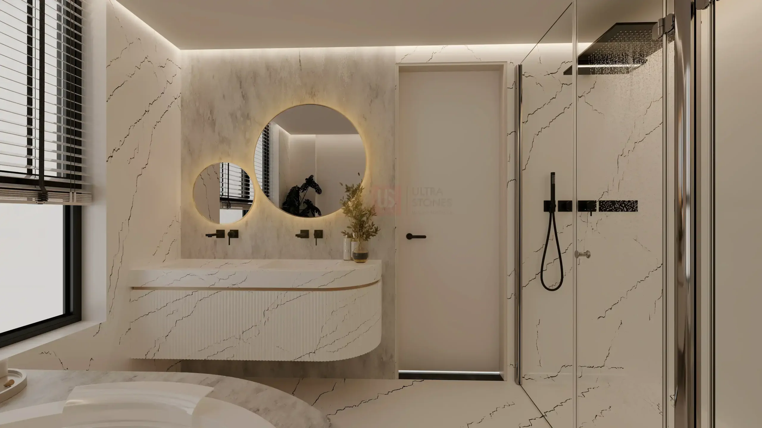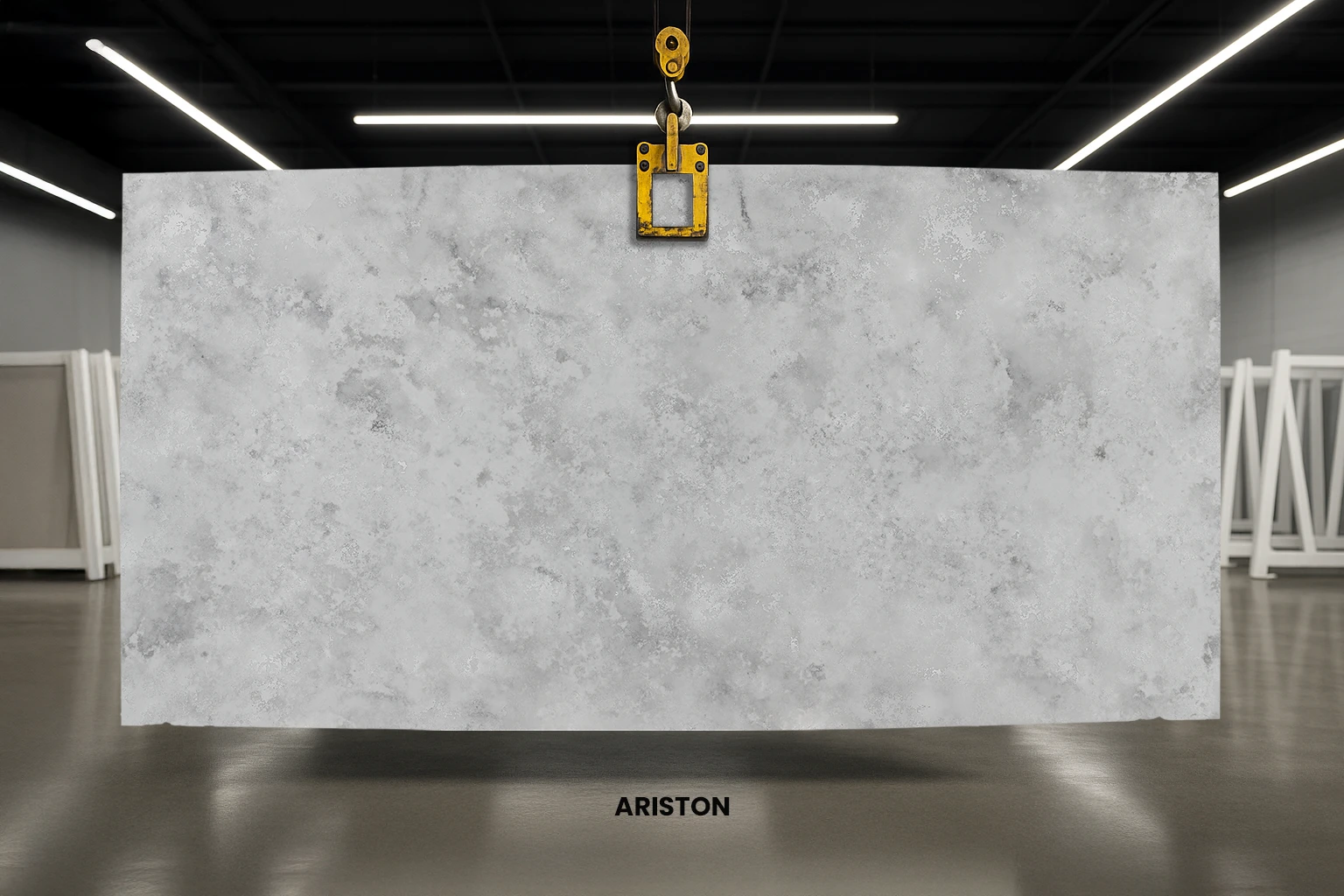 Ariston Polished Quartz is a striking modern style statement, celebrated for its visually captivating surface and gentle white and grey variations that lend an organic, natural appeal. Its subtle palette blends effortlessly with both traditional and contemporary design styles, offering versatility across a variety of interiors. The polished finish enhances brightness by reflecting natural light, making any space feel open, airy, and subtly refined.