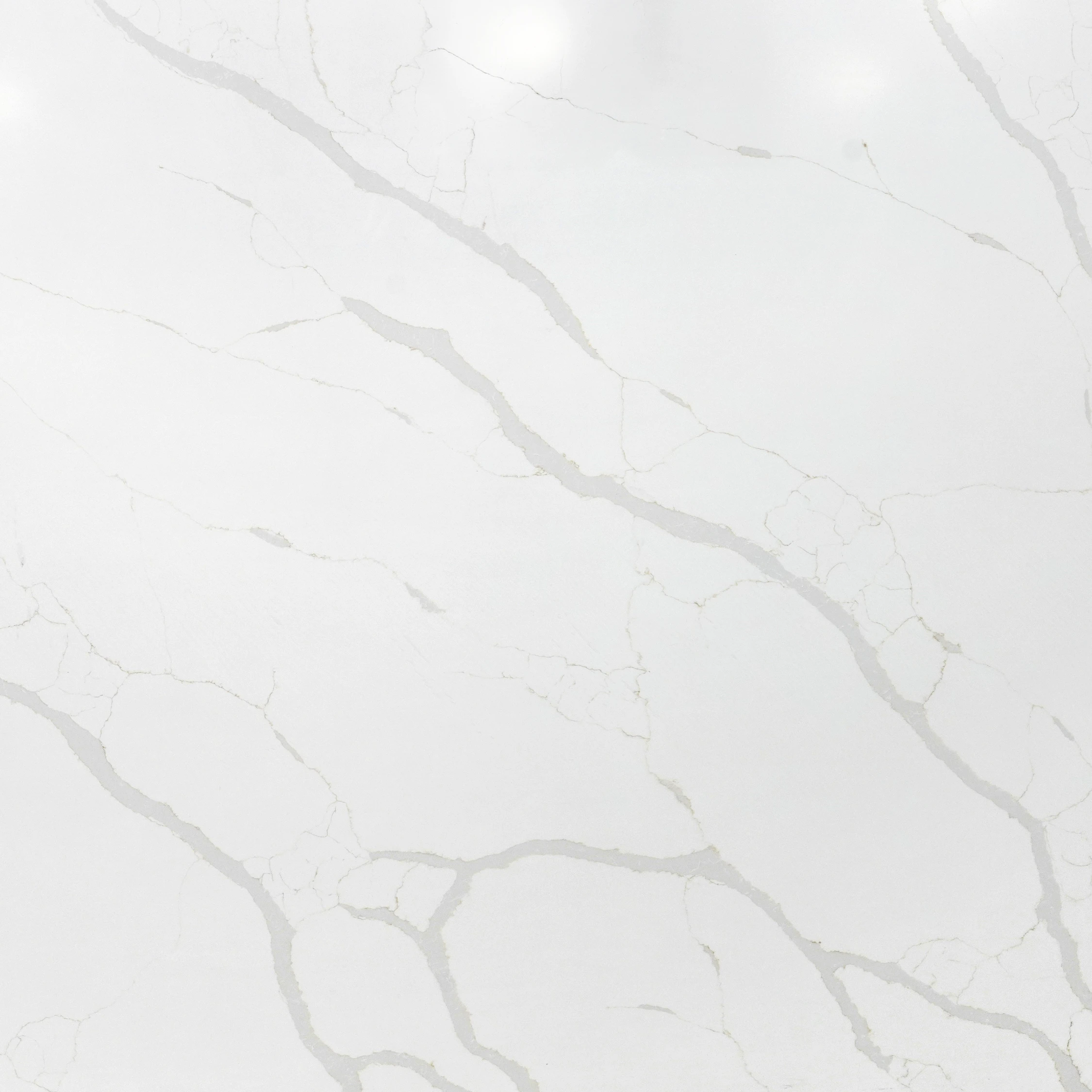 Aspen Gold quartz exudes the timeless charm of natural marble with a clean white background and elegant grey and golden veins. Thick and pencil veins weave together into tasteful patterns similar to those of marble. In addition to its premium appearance, its durability makes this quartz a perfect choice for high-traffic areas.