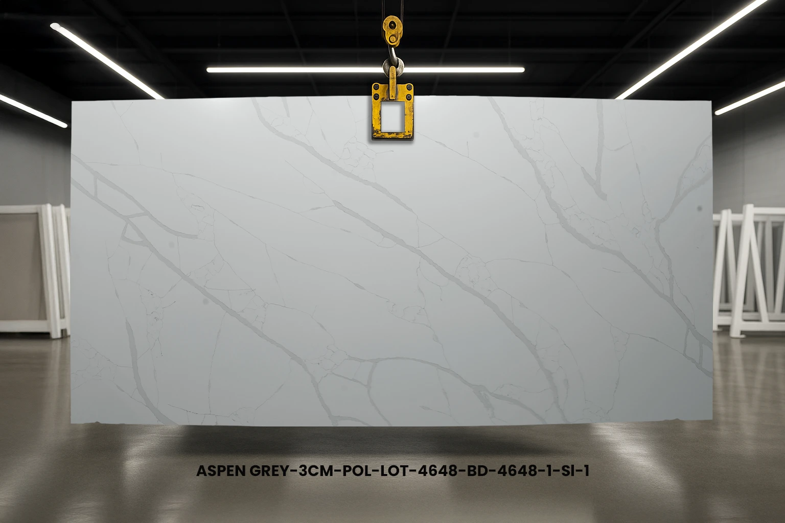 Aspen Grey quartz mirrors the timeless charm of natural marble with a pristine white background and elegant grey veins. Thick and pencil veins weave together into tasteful patterns similar to that of marble. Apart from its premium appearance, its durability makes this quartz a perfect choice for high-traffic areas.