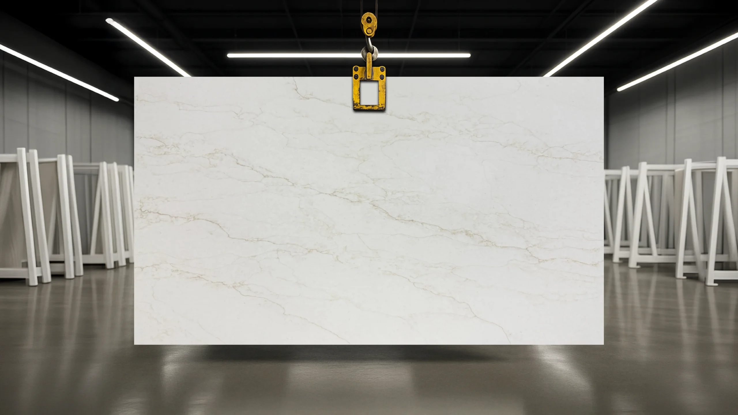 Calacatta Arafura quartz captivates with its natural charm, showcasing a warm white surface delicately traced with elegant golden veins that flow effortlessly across the stone. This harmonious blend of warmth and luxury makes it an ideal choice for elevating everyday spaces. Whether in a kitchen or bathroom, it brings a graceful, high-end finish that endures.