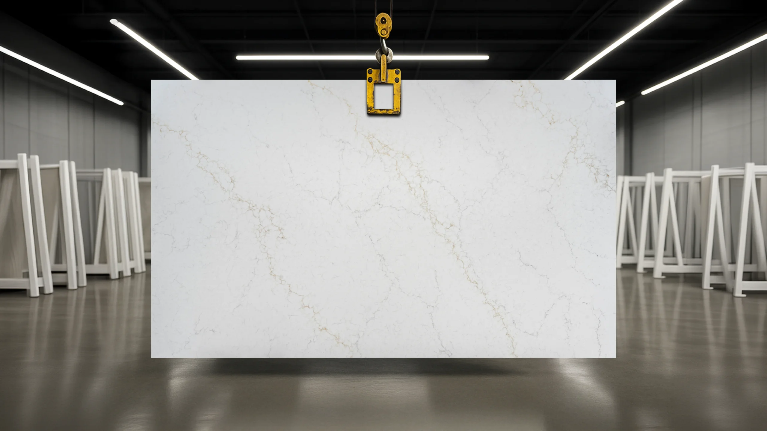 Calacatta Belaire quartz is a premium choice for designing modern residential and commercial spaces. It flaunts a pristine white surface adorned with subtle grey and golden veins, adding versatility to its appearance. Whether in a kitchen or a bathroom, Calacatta Belaire quartz can elevate the aesthetic and functional value of any space.