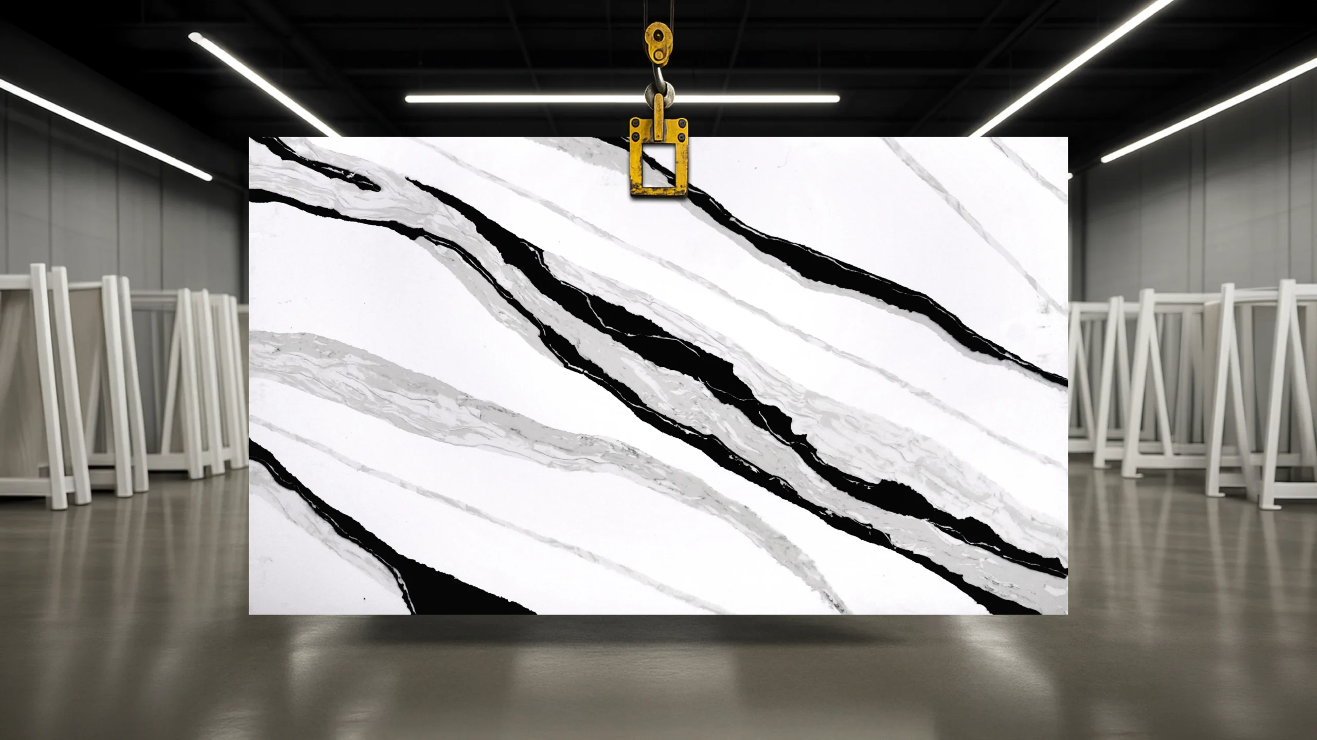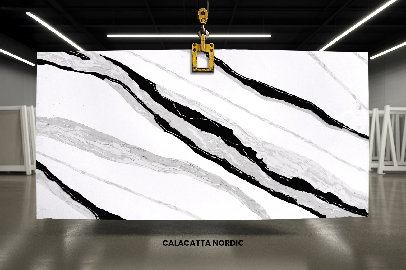 Calacatta Nordic quartz is a perfect choice for designing bold and dramatic interiors. Thick black and grey veins traverse across its white surface in a striking contrast. In addition to its beauty, this quartz is durable enough to withstand daily wear and tear, making it suitable for high-traffic areas in your interior spaces.