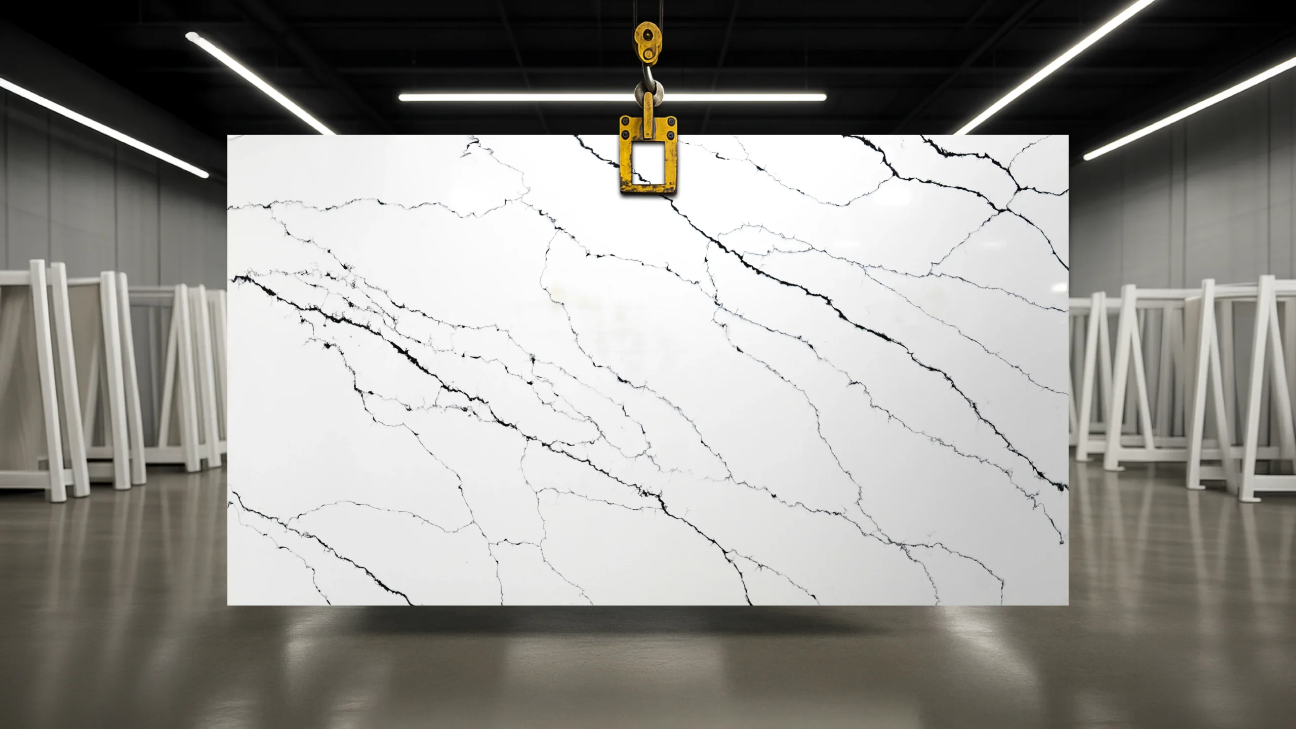 Calacatta Seraphina quartz exudes refined sophistication, with a brilliant white surface etched by bold black and soft grey veins that branch across the stone in dramatic fashion. Striking yet sophisticated, it is the perfect choice for creating luxurious accent features that elevate both residential and commercial interiors.