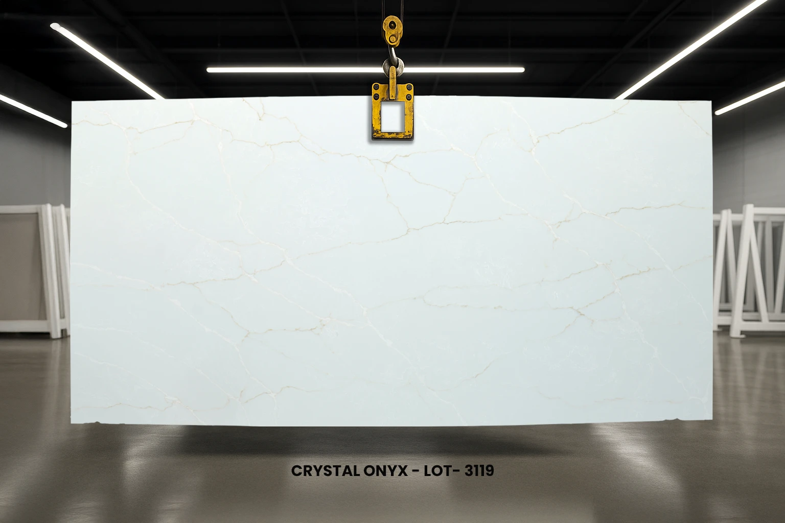 Crystal Onyx quartz is inspired by precious onyx surfaces. Featuring a crystal-like white surface elevated by subtle golden and tone-on-tone white veins, this quartz exudes ethereal charm and elegance. Moreover, it is resistant to staining, scratching, and etching, making it suitable for high-traffic areas in your interior spaces.