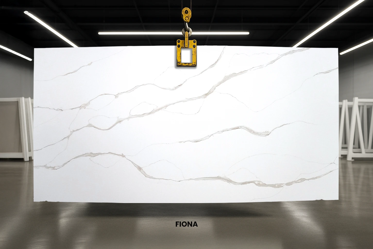 Fiona is a classic white and grey quartz valued for its pristine appearance. It has a brilliant white background elevated by pronounced grey veins and thin grey highlights. With clean and minimal veining, this stone offers a fresh look to any setting. Moreover, its superior strength makes this quartz a suitable choice for both residential and commercial spaces.