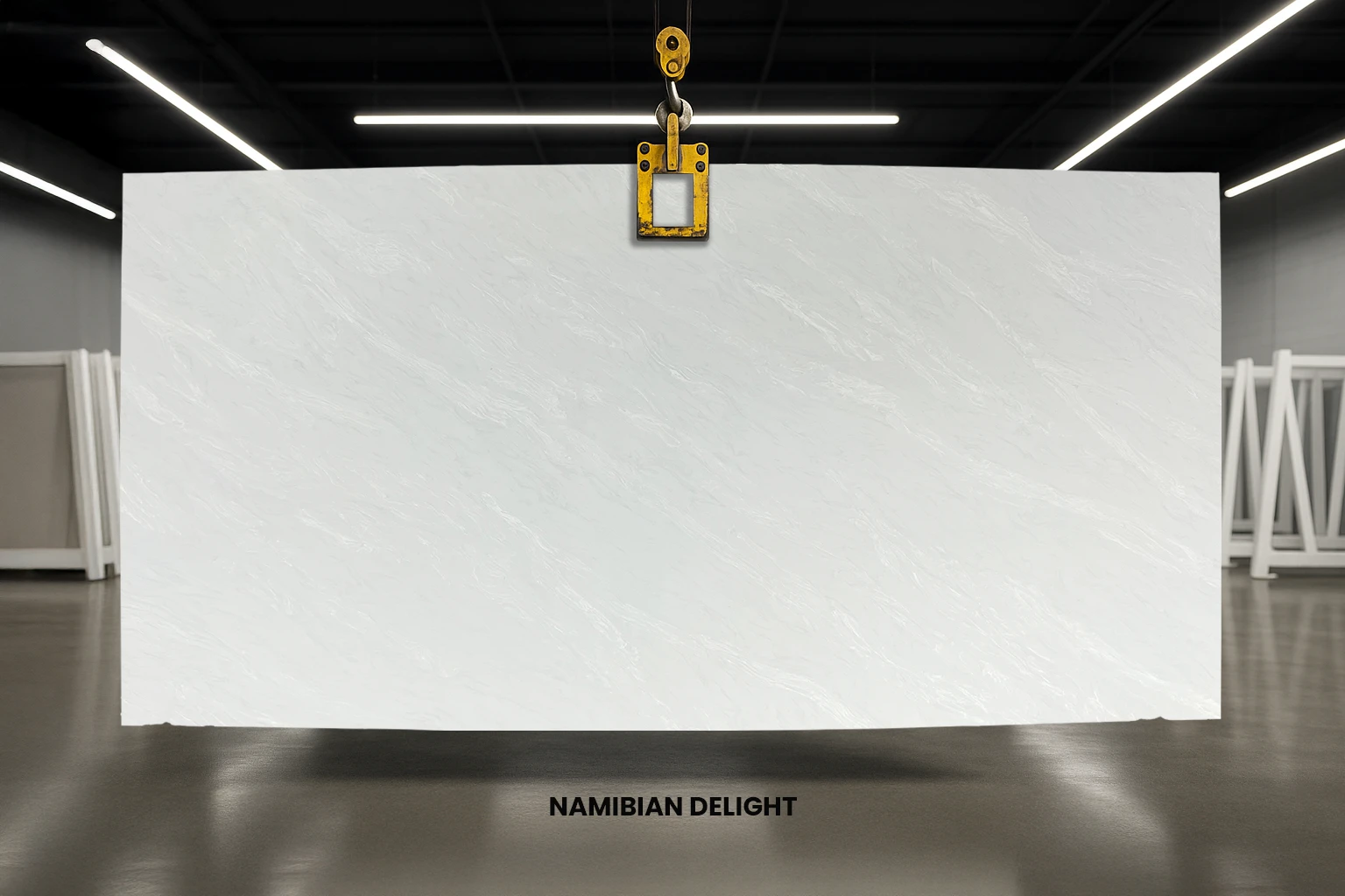 Namibian Delight is a beautiful quartz known for its organic appeal and superior durability. Subtle strokes of grey and tone-on-tone white veins on the pristine white background make this quartz more visually captivating, making it a great feature for designing statement countertops, vanities, shower walls, and more. Moreover, its durability contributes to the overall durability of a space.