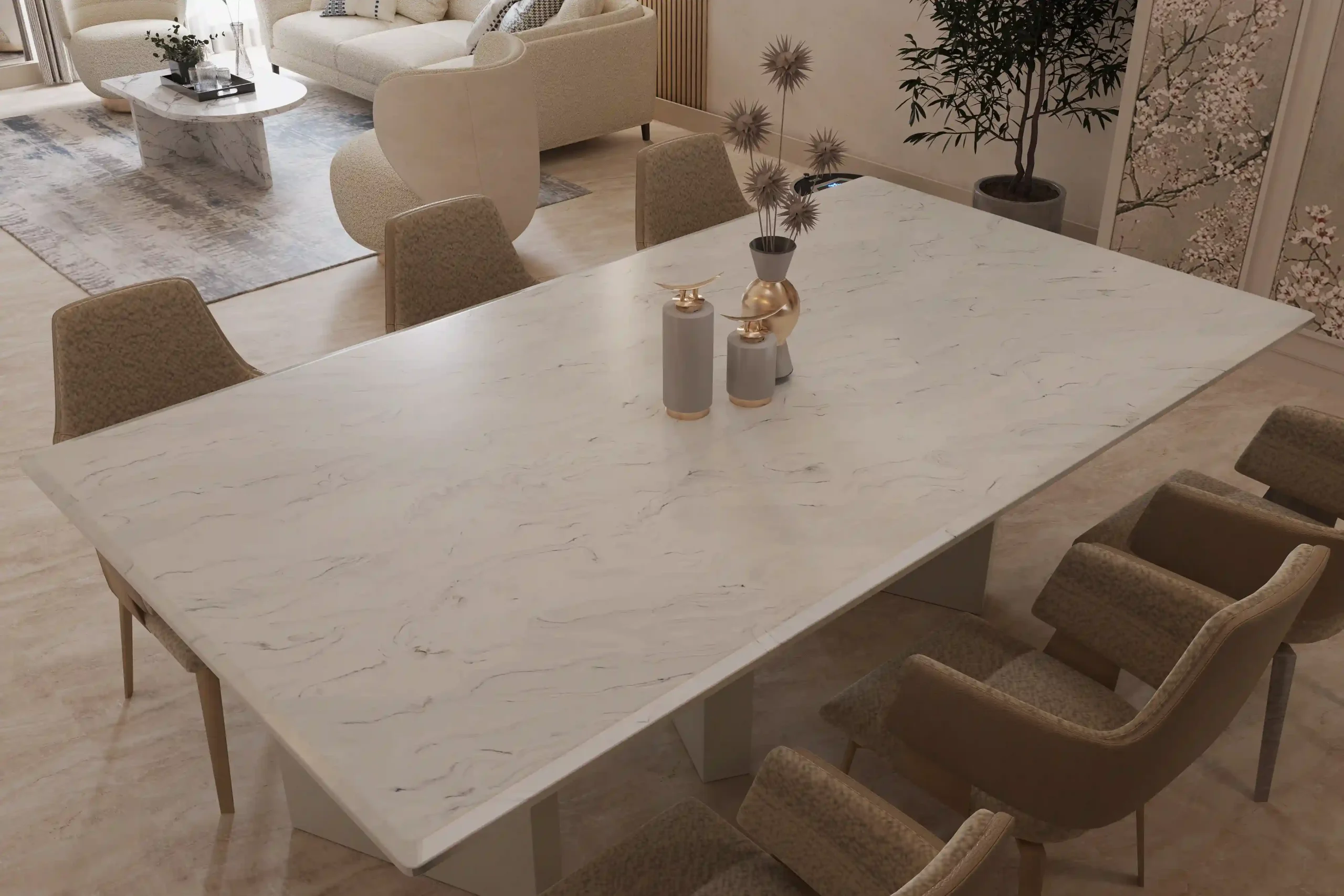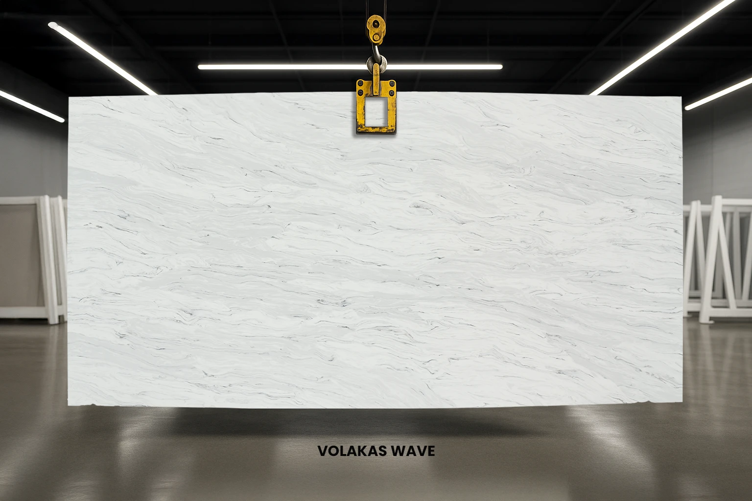 Volakas Wave is an elegant and durable choice for residential and commercial interiors. Its surface flaunts a subtle interplay of white and grey striations, accentuated by thin dark grey swirls that lend a sense of visual movement to the stone’s appearance. Its neutral palette blends seamlessly into both traditional and modern design settings, while its resistance to external impacts enhances the durability of any space.