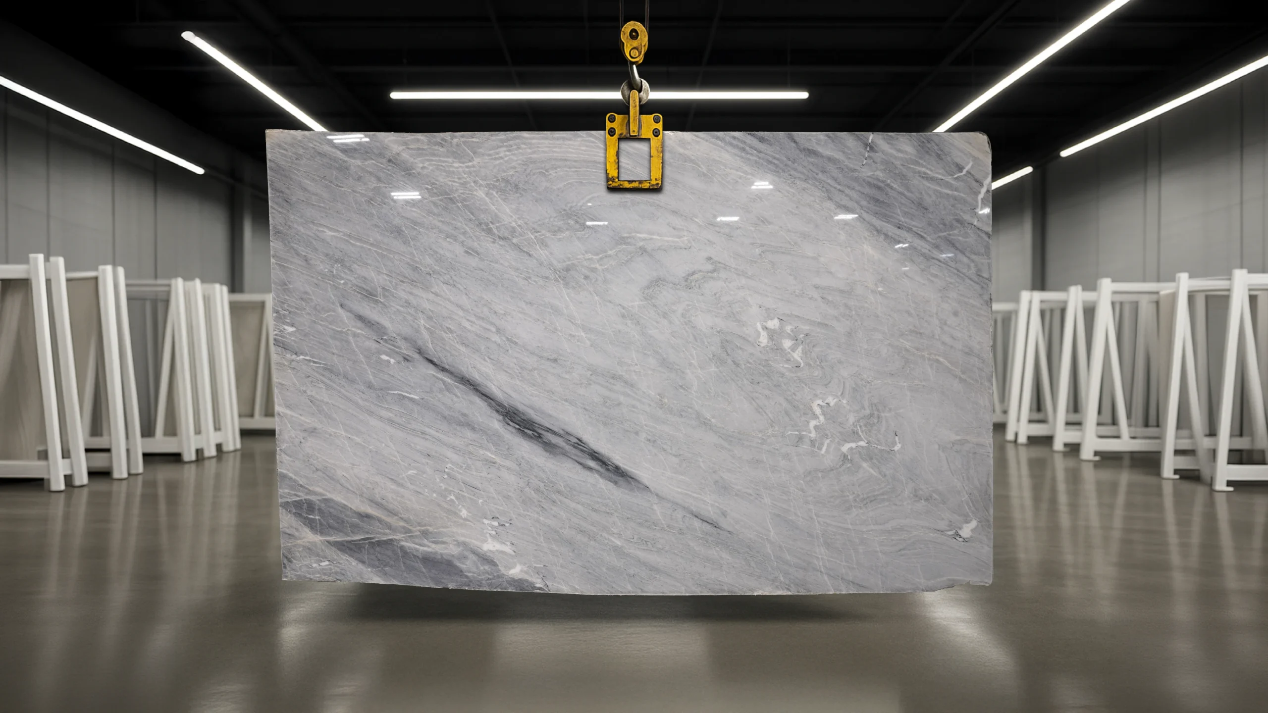 Angeli Blue is a beautiful marble from Italy. Its soft blue-grey surface flaunts delicate grey veins moving in gently, wave-like patterns across the slab. White and dark grey streaks further make it visually more captivating. Designers use Angeli Blue marble for statement countertops, vanities, accent walls, and other ornamental details. It adds depth and drama to their design stories.