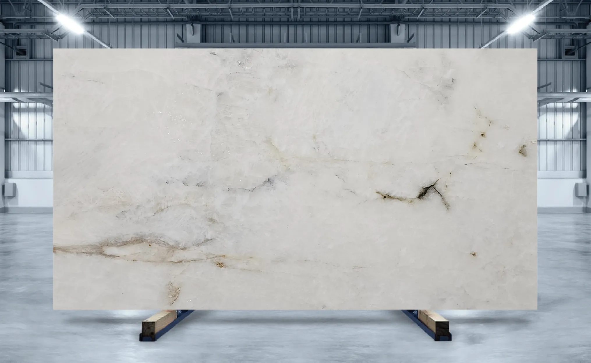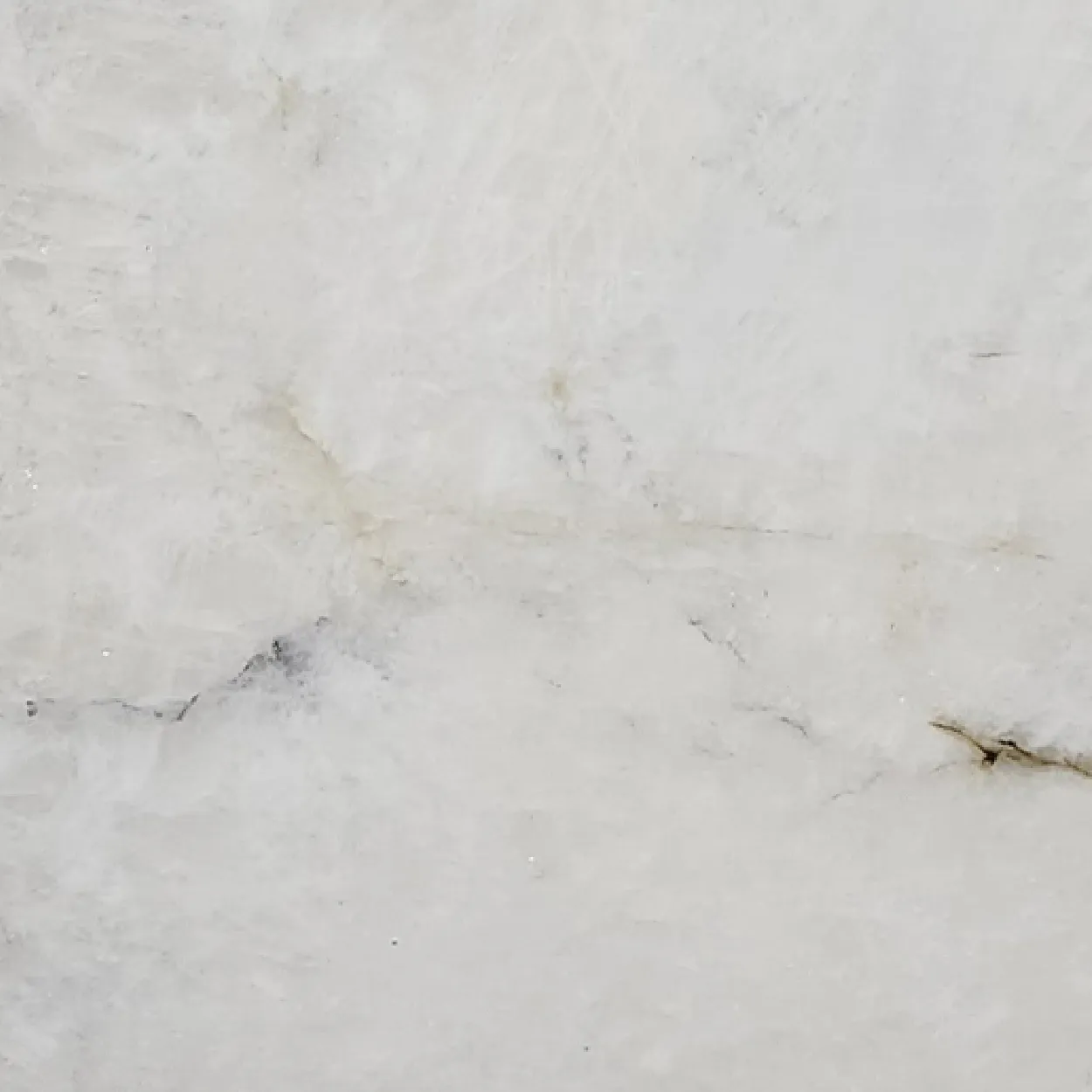 Cristallo is a refined translucent quartzite. Characterized by a soft white crystalline surface with occasional golden highlights, this stone exudes elegance and timeless appeal. Its neutral palette can blend effortlessly with various design aesthetics. Moreover, Cristallo emanates a soft glow when it is backlit, transforming any space into an enchanting abode. Create mesmerizing and durable spaces with our top-rated Cristallo. Create elegant countertops, accent walls, bar tops, and fireplaces with this magical piece of quartzite.