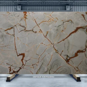 Deep blue quartzite is a magnificent find. The stone is sourced from limited quarries in Brazil and is notable for its distinctive color combination. Our Deep Blue quartzite has a stunning contrast of cool and warm tones, with a slate blue backdrop highlighted by white, coffee brown, and dark grey veins. Deep Blue quartzite is an excellent choice for creating impressive accent features. Design visually appealing countertops, bathroom walls, table tops, vanity tops, and waterfall islands.