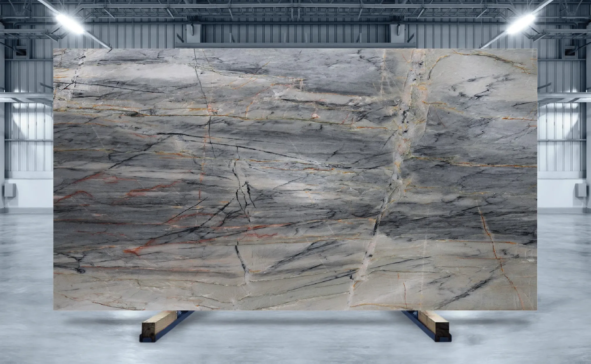 Ijen Blue quartzite is an ideal stone for designers looking to explore colors and patterns. The stone features a stunning combination of dusty blue, and white hues that form abstract cloud-like patterns. Subtle accents of dazzling gold veins provide a captivating visual edge to the stone. Create mesmerizing interior settings with the best quality Ijen Blue quartzite.