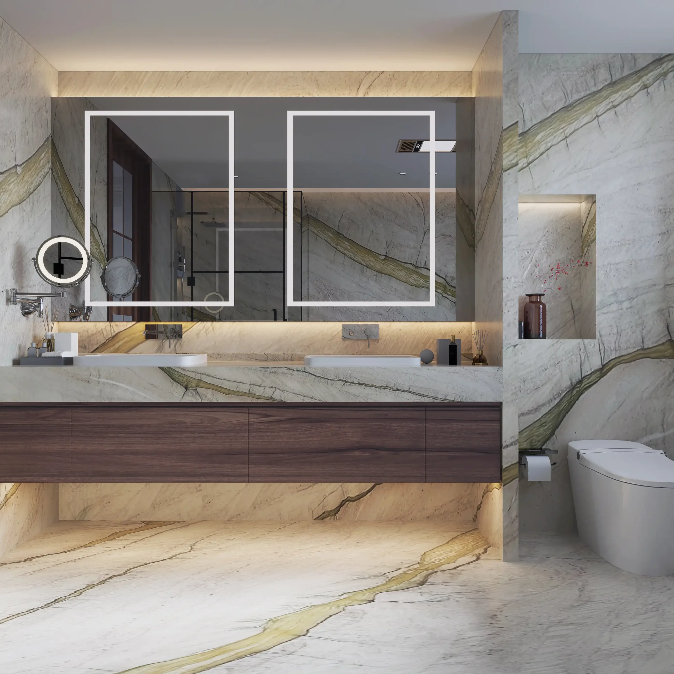 Montreal quartzite is prized for its somber appearance. It boasts a warm white background highlighted by greenish-yellow and slate blue veins. Subtle hints of rustic red veins further add versatility and depth to the stone’s appearance. The bright accent of Montreal quartzite can instantly brighten up any ambiance, transforming spaces into a luxury retreat. Use this stone to create beautiful flooring, tabletops, bathrooms, and other settings.