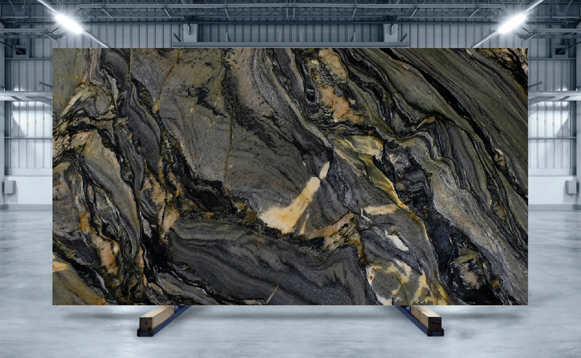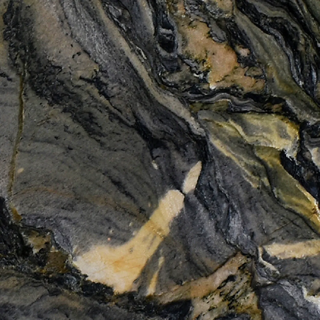 Ocean Fantasy is a captivating quartzite, characterized by intricate patterns, this stone exudes a dramatic charm that can elevate any design scheme. Green, beige, and grey veins weave into an ecstatic abstract pattern that resembles sea weeds deep under an ocean. Incorporate this stone into your design projects to create visually intriguing interiors.