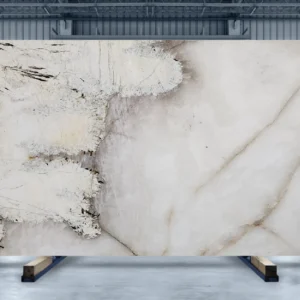 Quarried in Brazil, Patagonia quartzite is a true example of nature’s artistry. It is a unique quartzite that features a translucent crystalline surface helmed by solid stone clusters. This semi-translucent stone is a perfect choice for creating mesmerizing backlit countertops, vanity tops, backsplashes, accent walls, and staircases.