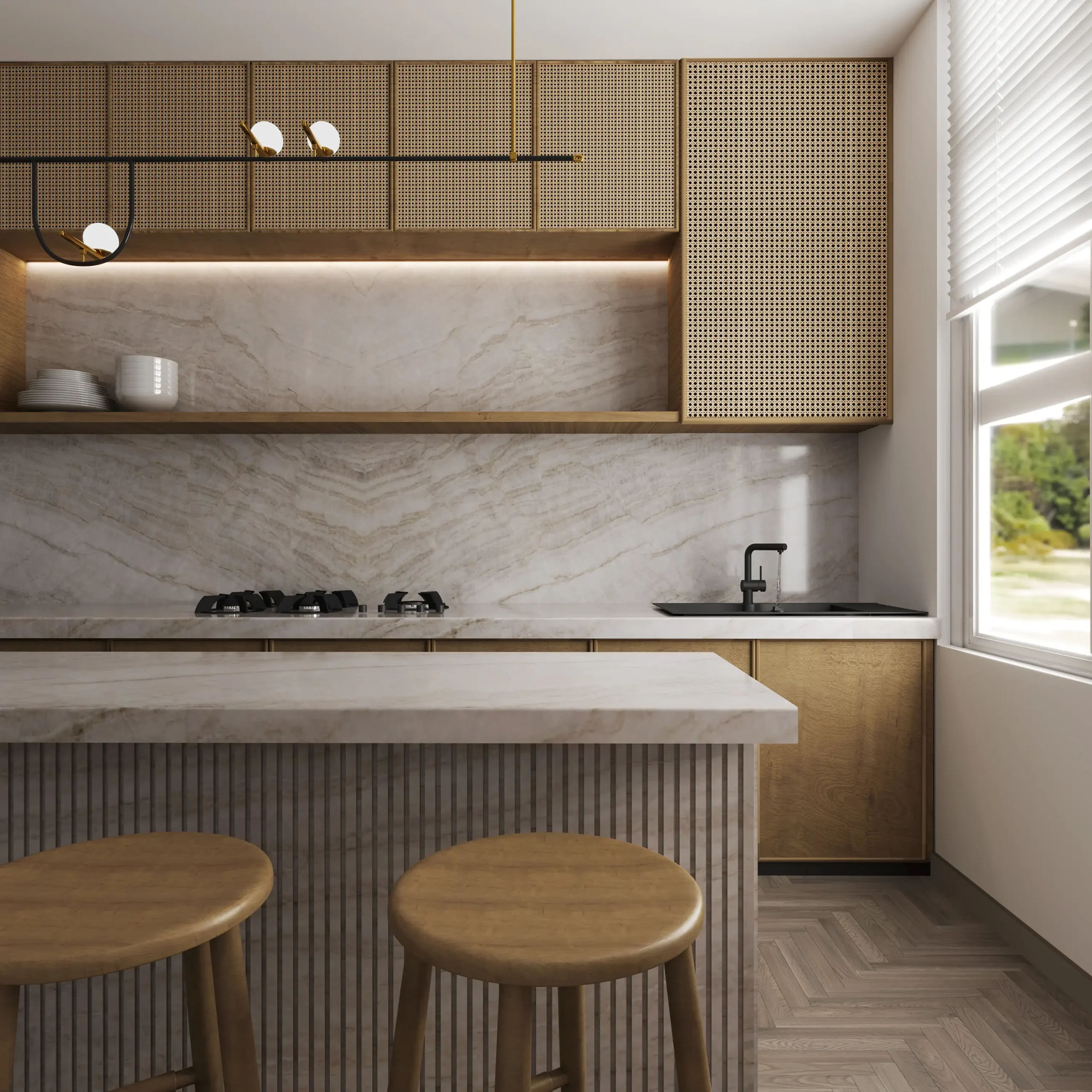 Perla Venata quartzite exudes timeless elegance. It features a beautiful white surface adorned with warm beige veins, adding a touch of warmth to any space. Furthermore, its exceptional resistance to daily wear and tear makes Perla Venata suitable for designing high-traffic areas.