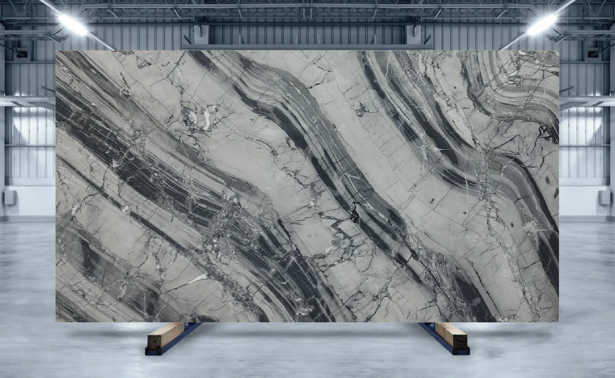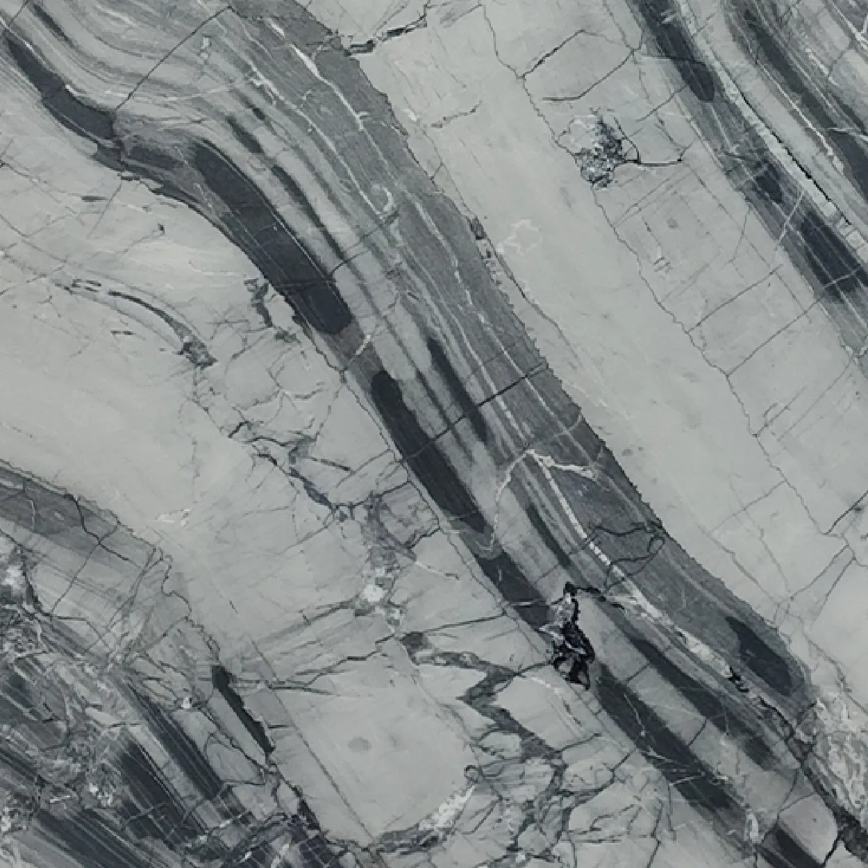 Spider Grey quartzite is a beautiful monochromatic stone known for its incredible strength and unique appearance. It boasts a saturated white background elevated by thick, dark grey angular bands stretched across the surface, adding depth and movement to the stone. Its striking appearance and superior durability make Spider Grey quartzite a great choice for residential and commercial applications.