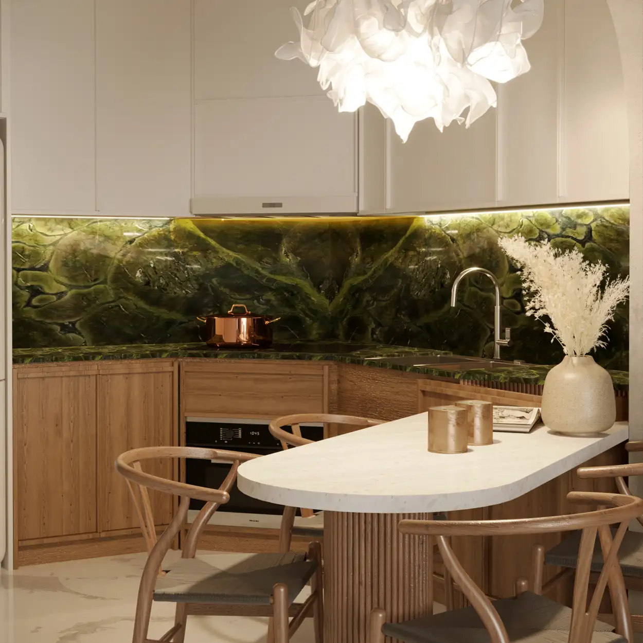 Victoria Regia is a gorgeous and durable quartzite. Its background features deep green bubble shapes that give the stone a unique appearance. This quartzite is a perfect choice for creating statement features. Add a dramatic depth to your interiors with the best quality Victoria Regia quartzite.